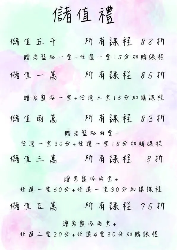 小招牌上有寫著他們家的服務項目,主要以泰式指壓、精油SPA、臉部SPA及台南少見的岩盤浴為主。